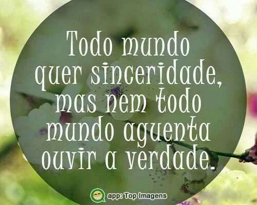Todo mundo quer sinceridade, mas nem todo mundo aguenta ouvir a verdade.