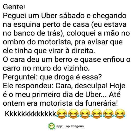 Ele respondeu: Cara, desculpa! Hoje é o meu primeiro dia de Uber... Até ontem era motorista da funerária!