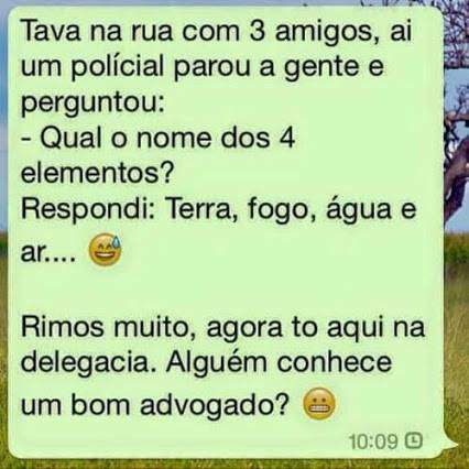 Tava na rua com 3 amigos, ai um policial parou a gente e perguntou: