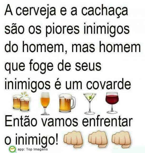 A cerveja e a cachaça são os piores inimigos do homem, mas homem que foge de seus inimigos é um covarde.