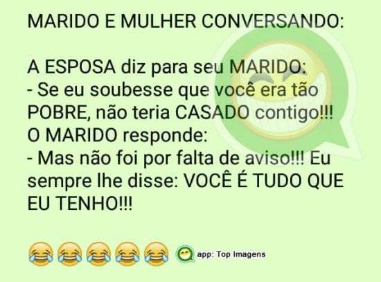 - Se eu soubesse que você era tão pobre, não teria casado contigo!