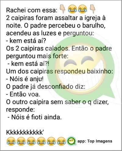 2 caipiras foram assaltar a igreja à noite. O padre percebeu o barulho, acendeu as luzes e perguntou: