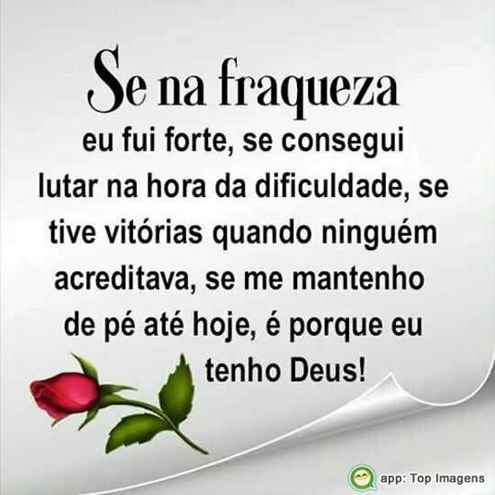 Se na fraqueza eu fui forte, se consegui lutar na hora da dificuldade, se tive vitórias quando ninguém acreditava, se me mantendo de pé até hoje, é porque eu tenho Deus!