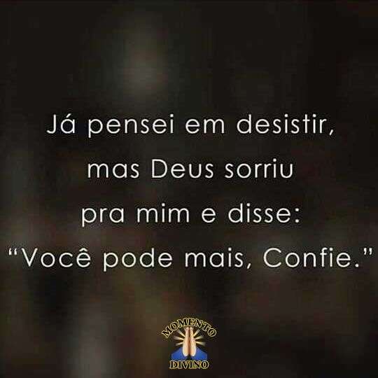 Já pensei em desistir mas Deus sorriu pra mim e disse: Você pode mais, Confie.