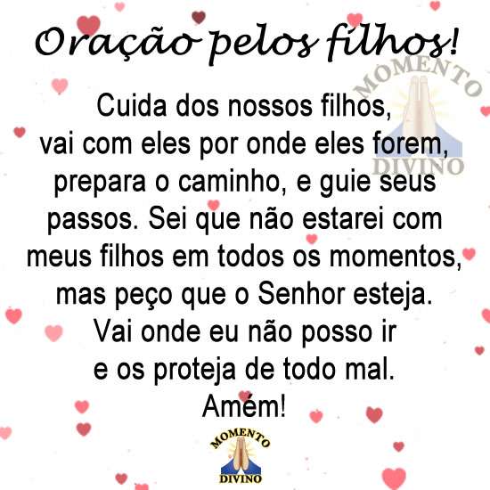 Cuida dos nossos filhos, vai com eles por onde eles forem, prepara o caminho, e guie seus passos.