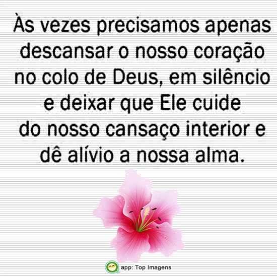 Às vezes precisamos apenas descansar o nosso coração no colo de Deus, em silêncio e deixar que Ele cuide do nosso cansaço interior e dê alívio a nossa alma.