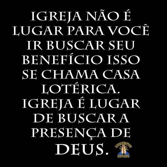 Igreja não é lugar para você ir buscar seu benefício isso se chama casa lotérica. Igreja é lugar de buscar a presença de Deus.