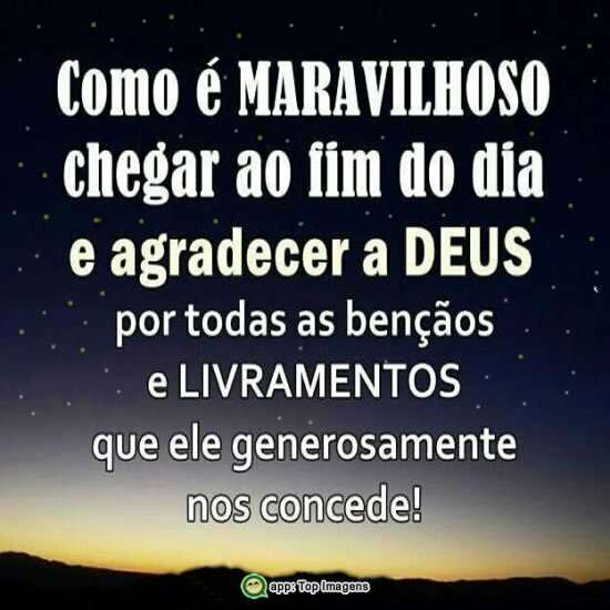 Como é maravilhoso chegar ao fim do dia e agradecer a Deus por todas as bênçãos e livramentos que ele generosamente nos concede!