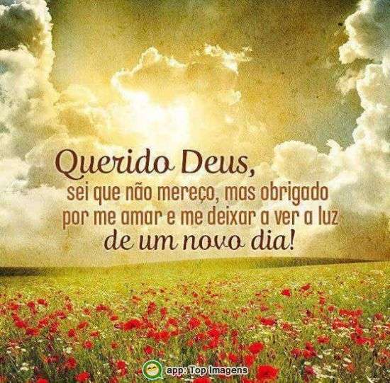 Querido Deus, sei que não mereço, mas obrigado por me amar e me deixar a ver a luz de um novo dia!