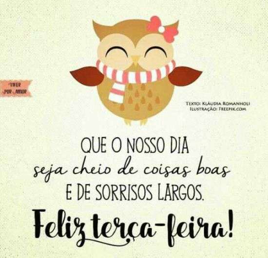 Que o nosso dia seja cheio de coisas boas e de sorrisos largos. Feliz terça-feira!