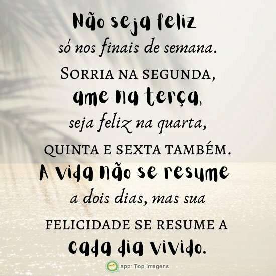 Sorria na segunda, ame na terça, seja feliz na quarta, quinta e sexta também.